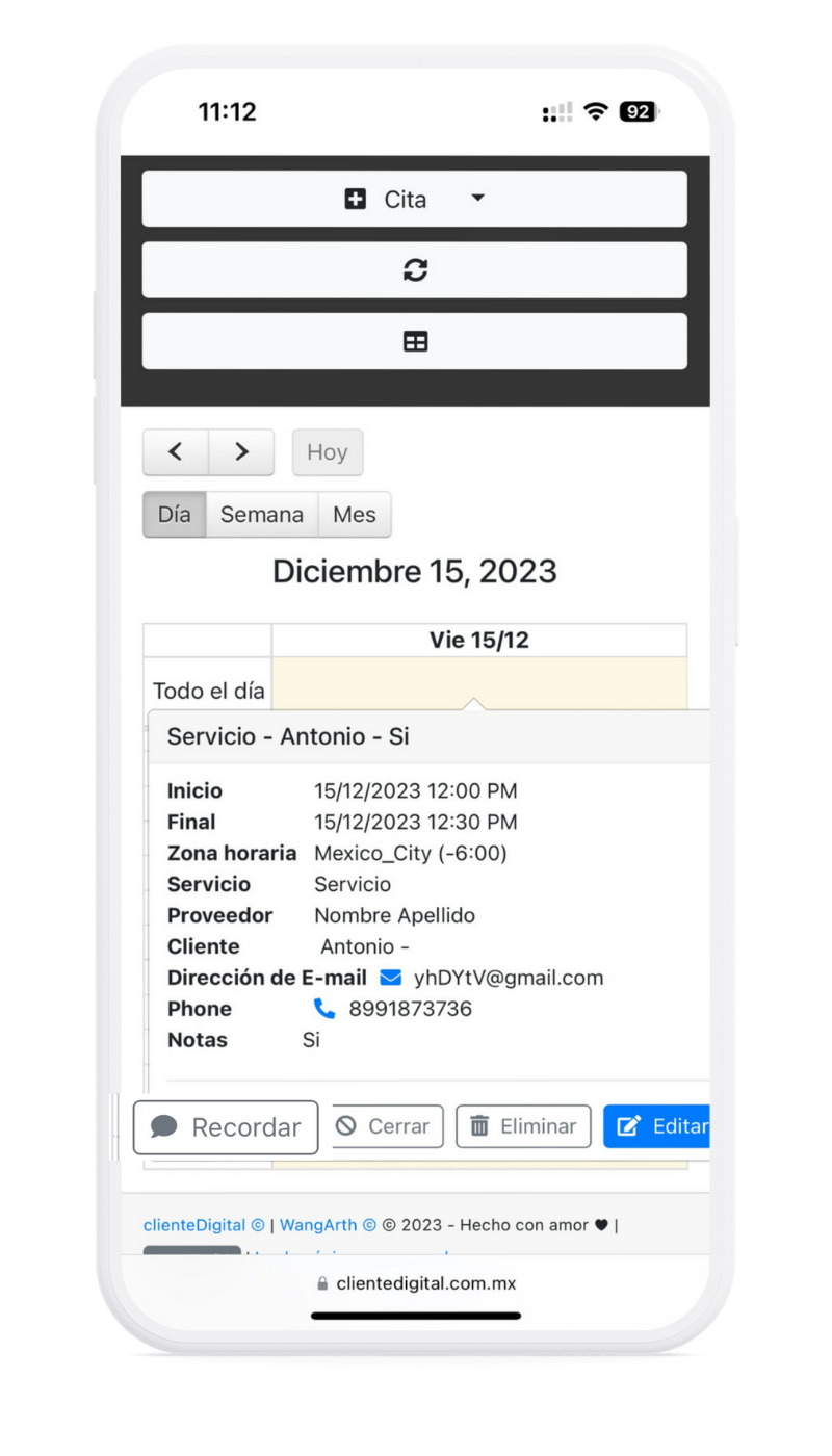 Tus clientes pueden agendar una cita por su cuenta, pero tambien tu puedes programar citas desde la plataforma.