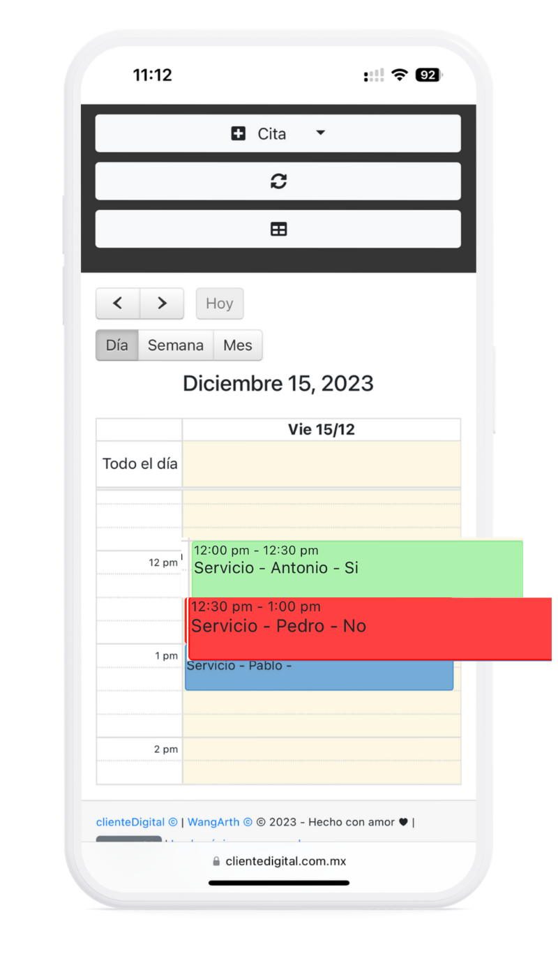 Pintamos de color verde si la cita es confirmada y color rojo si el cliente no llego a la cita.